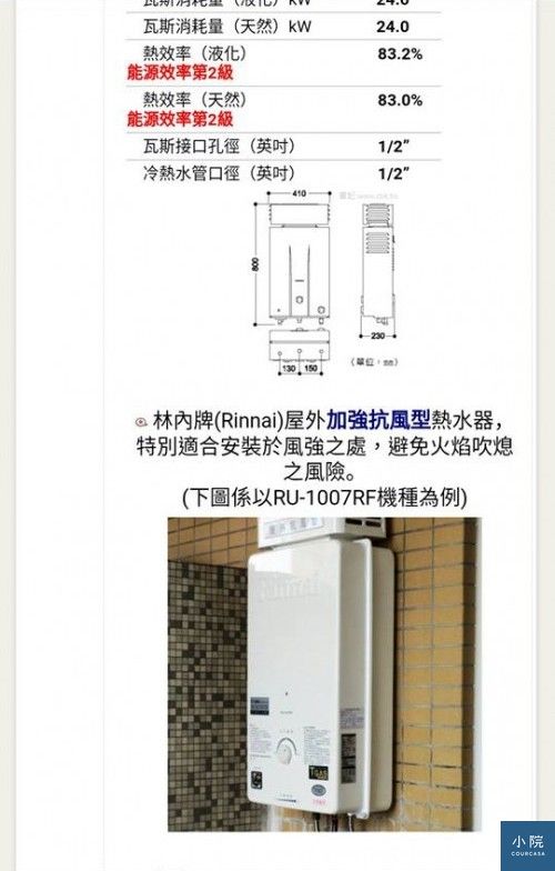 邱為偉:掛外牆建議選大樓防風型,多了一個外蓋還是能擋一些雨水,比自然排氣貴,且強排目前也沒有幾台機種有防水等級的標示。有些人擔心掛戶外風吹日曬會加裝鐵衣,但技術士考試也說鐵衣不建議安裝,容易造成燃燒不全,及燃氣洩漏時不易逸散!原廠所付的配件包,可看出螺絲都是不鏽鋼的,所以建議也選配不鏽鋼架更耐候。