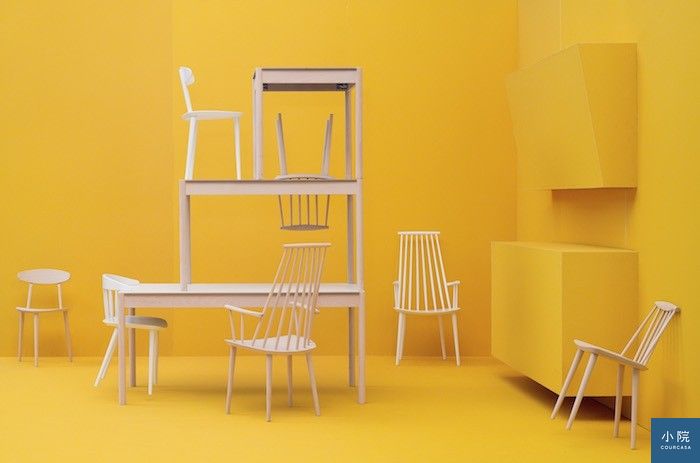 HAY的J104、J077和J110,是三把最容易合作混搭,也容易被比較的單椅,因為它們的造型靈感都來自溫莎椅,並於椅背寬窄高低略有差異。常見餐椅混搭形式,是高背有扶手的J110當主人椅,J104和J077選同色混搭成副餐椅。